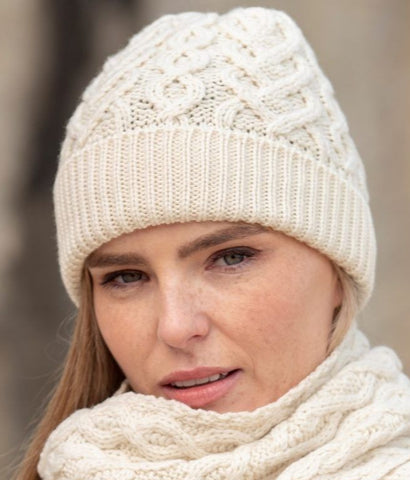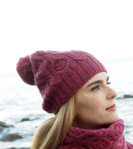 Leaf Design Pom Pom Hat 100% Merino Wool