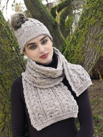 Chunky Cable Knit Scarf in Oatmeal Colour