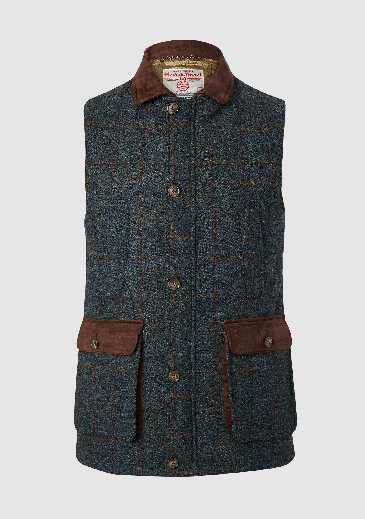 - Garment features a label which authenticates the cloth as genuine Harris Tweed