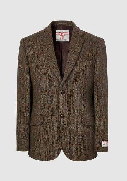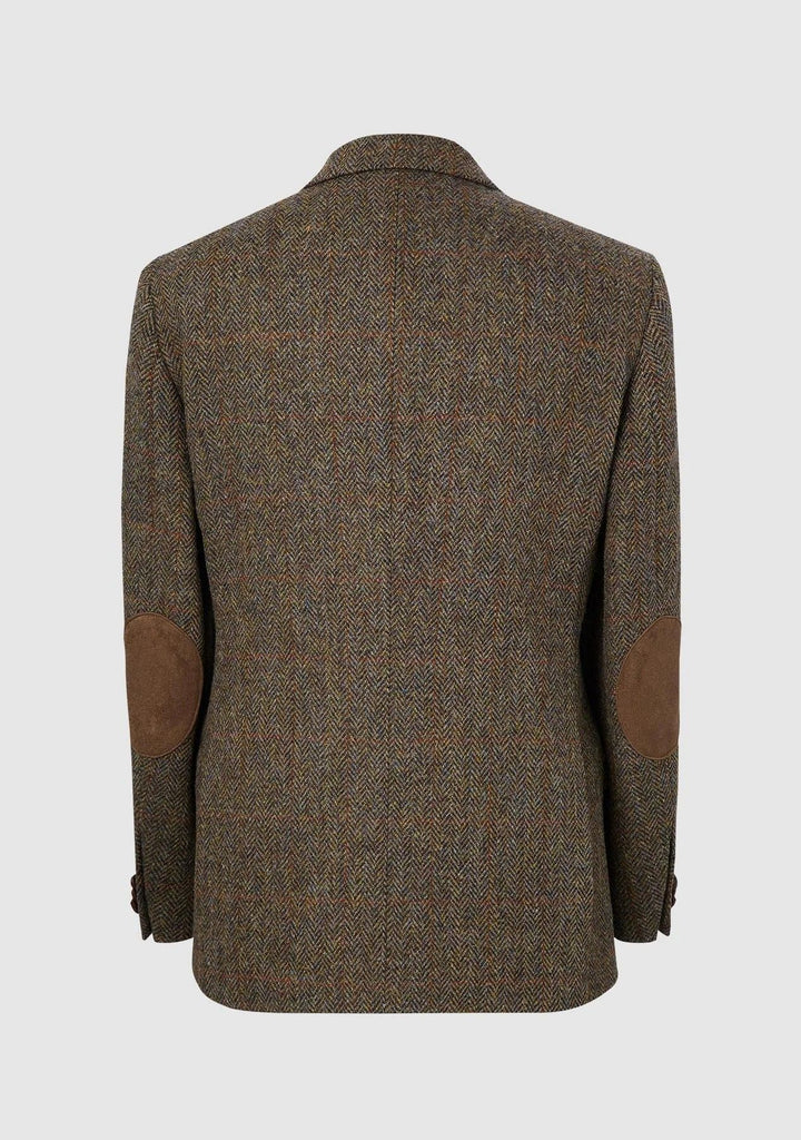 This gorgeous Harris Tweed Patrick Jacket features two buttons, a vented cuff and elbow patches. With classic style, this jacket can be worn to the office as business casual and it can be paired with dress trousers or jeans. This jacket can be worn casually with a classic wool sweater and trousers or blue jeans.