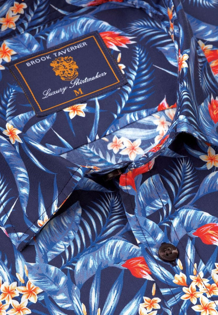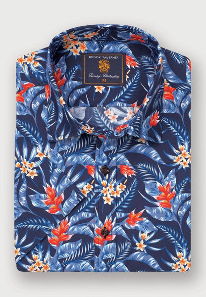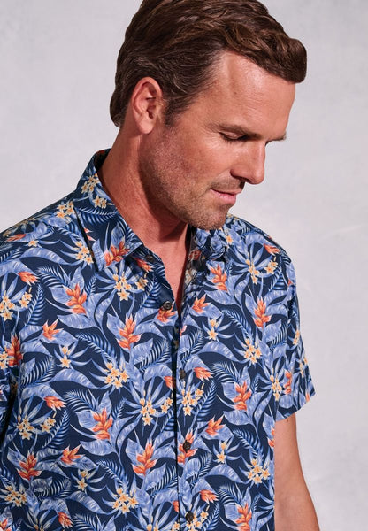 Regular Fit Navy Bird of Paradise Tropical Print Short Sleeve Shirt